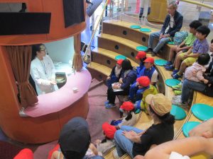 この日、2年生は1日かけて、校外学習に出かけました。目的地は県立科学館と市立美術館です。校外学習では、本物に触れたり、体験したりして、学びを深めるとともに、施設内のきまりやルール等を守り、活動を楽しむことの大切さも学んでいます。