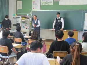 白根源小では、奇数学年(1・3・5年生)で、防犯学習に取り組んでいます。この日、午前中に、警備会社の方を招き、1・3年生を対象とした学習会(登下校時・留守番時)を行いました。午後には、南アルプス警察署や源駐在所の職員の皆様を講師に、5年生を対象とした防犯(SNS犯罪・いじめ等)学習を行いました。