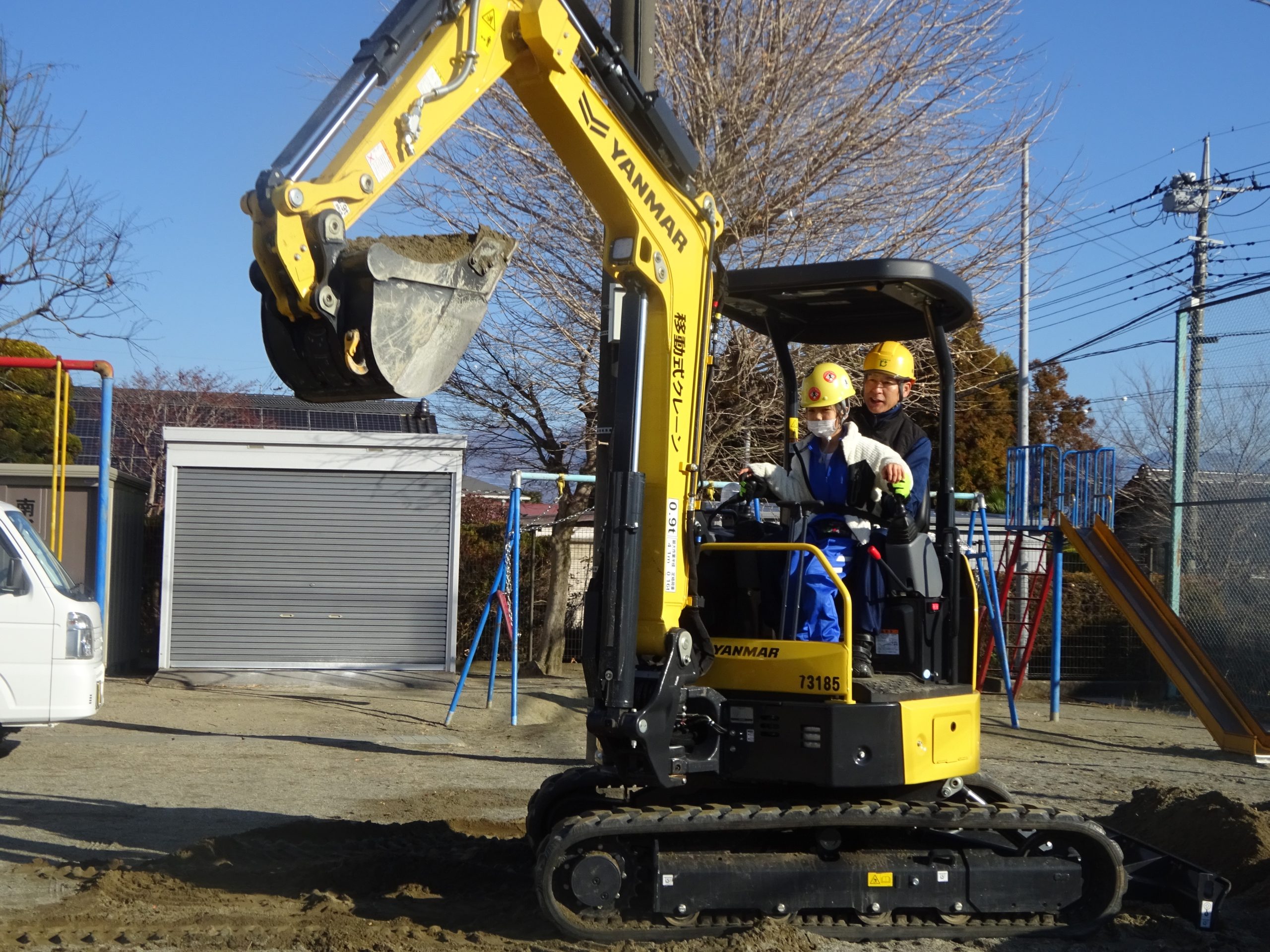 この日、地元の建設業者様のご協力により、1年生がはたらく自動車体験を行いました。この活動は、国語の授業の一環として行ったもので、ショベルカーなど重機の特徴を文章で表すための体験学習です。