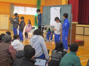 この日の中休み、体育館で、翌日に控えた児童会選挙・立会演説会のリハーサルをしてしました。選挙管理委員、立候補者・責任者が集まり、会の流れや立ち位置などを確認しました。