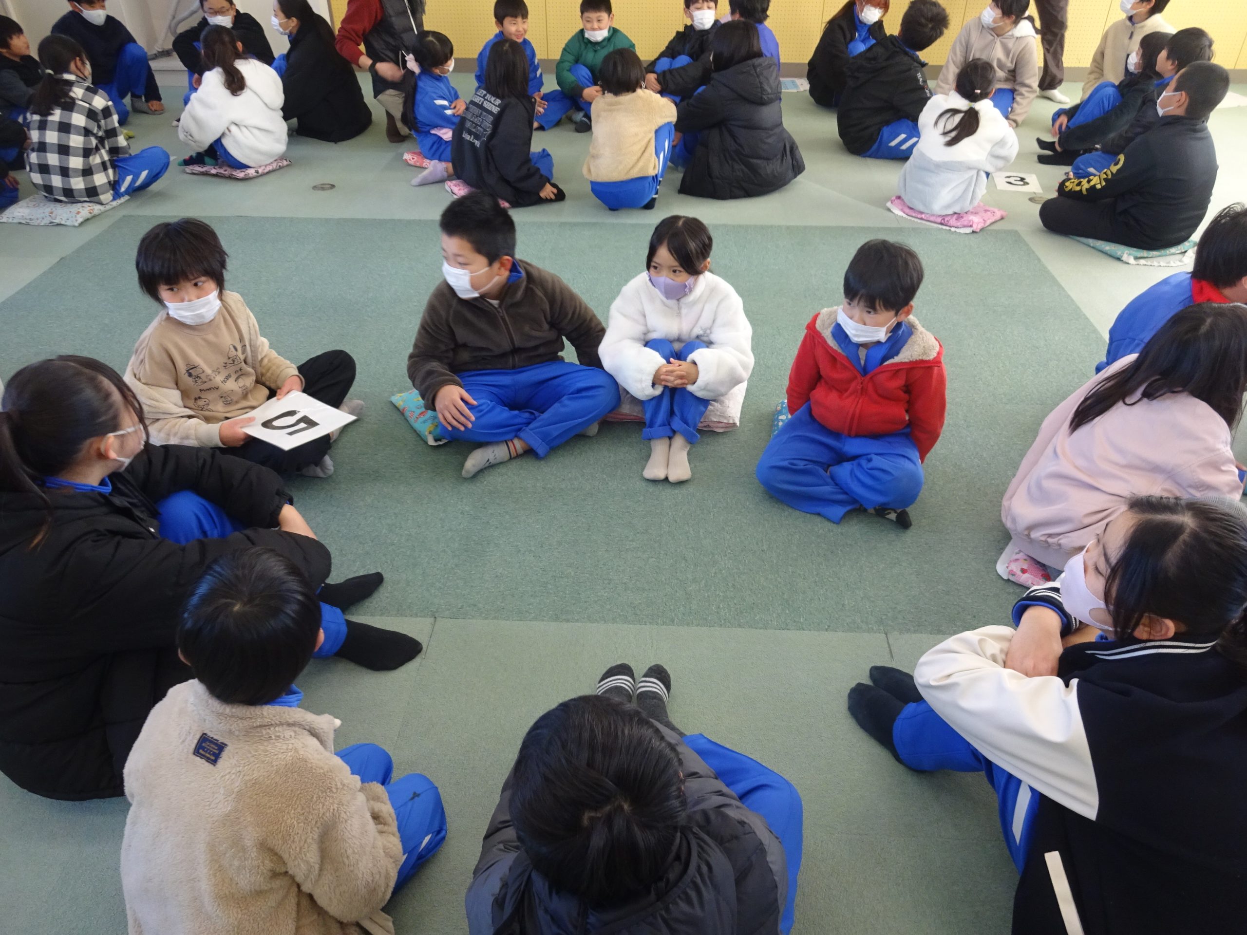 この日の朝、ペア学年で「ももっこタイム」を行いました。一つの話題について、異学年で話し合うことにより、相手を思いやる気持ちや相手への接し方を学ぶことができます。