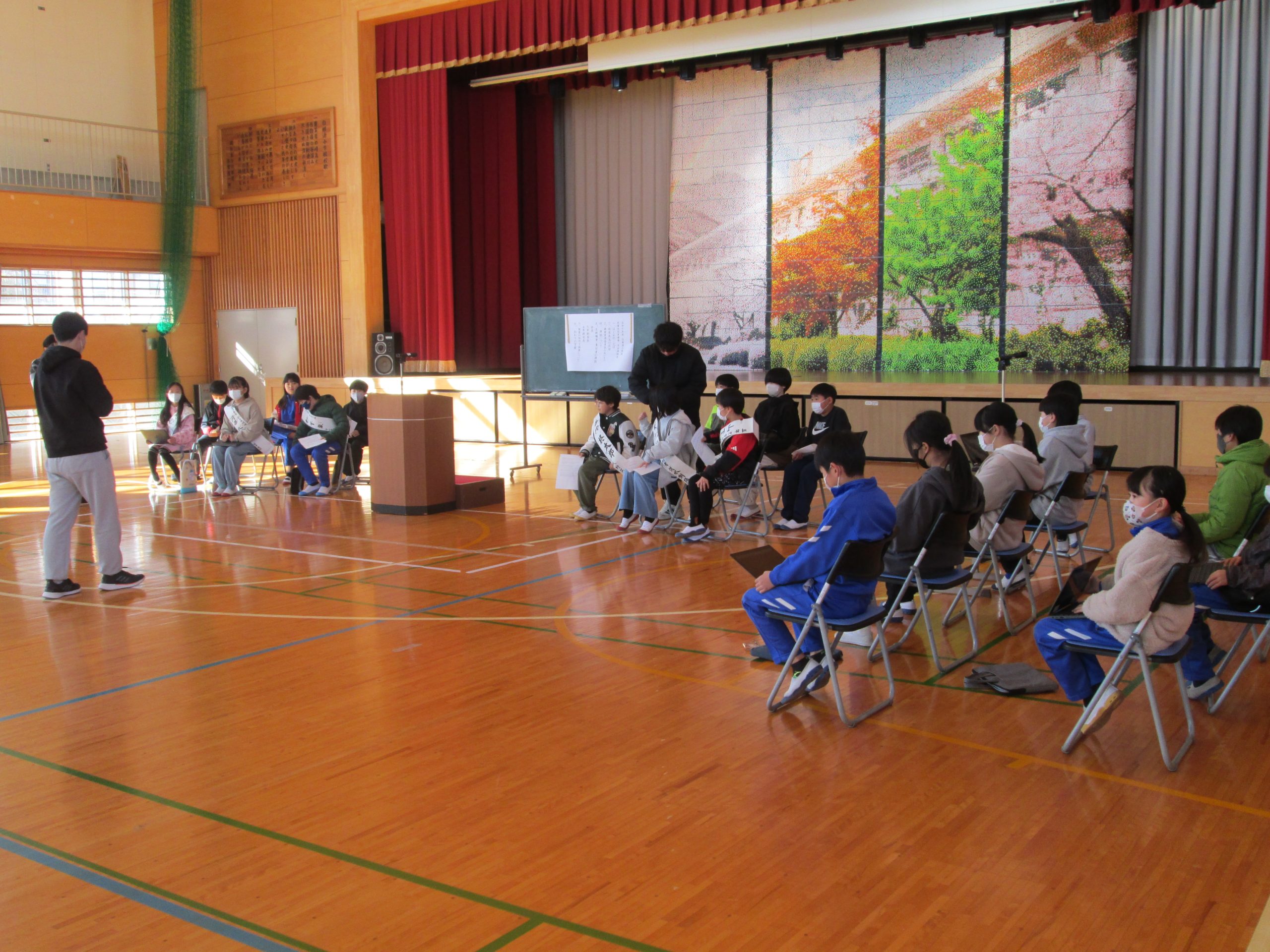 この日は、令和8年度白根源小学校児童会の会長・副会長を決める児童会選挙の投開票日です。その投開票に先立ち、各候補者が自身の公約を有権者(3~6年生)に伝える最後の場である「立会演説会」が、体育館で行われました。