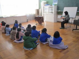 この日の1・2校時、菜の花の会の方を招いて、低学年(1・2年生)を対象に読み聞かせをしました。低学年にとっては、今年度最後となる読み聞かせでしたが、最後まで講師の読み聞かせをしっかり聞いていた子どもたちの姿が印象的でした。
