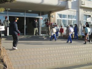 今週から3学期間あいさつ運動が始まりました。今週は3年生と5年生がペアになって、登校後のあいさつを呼び掛けています。