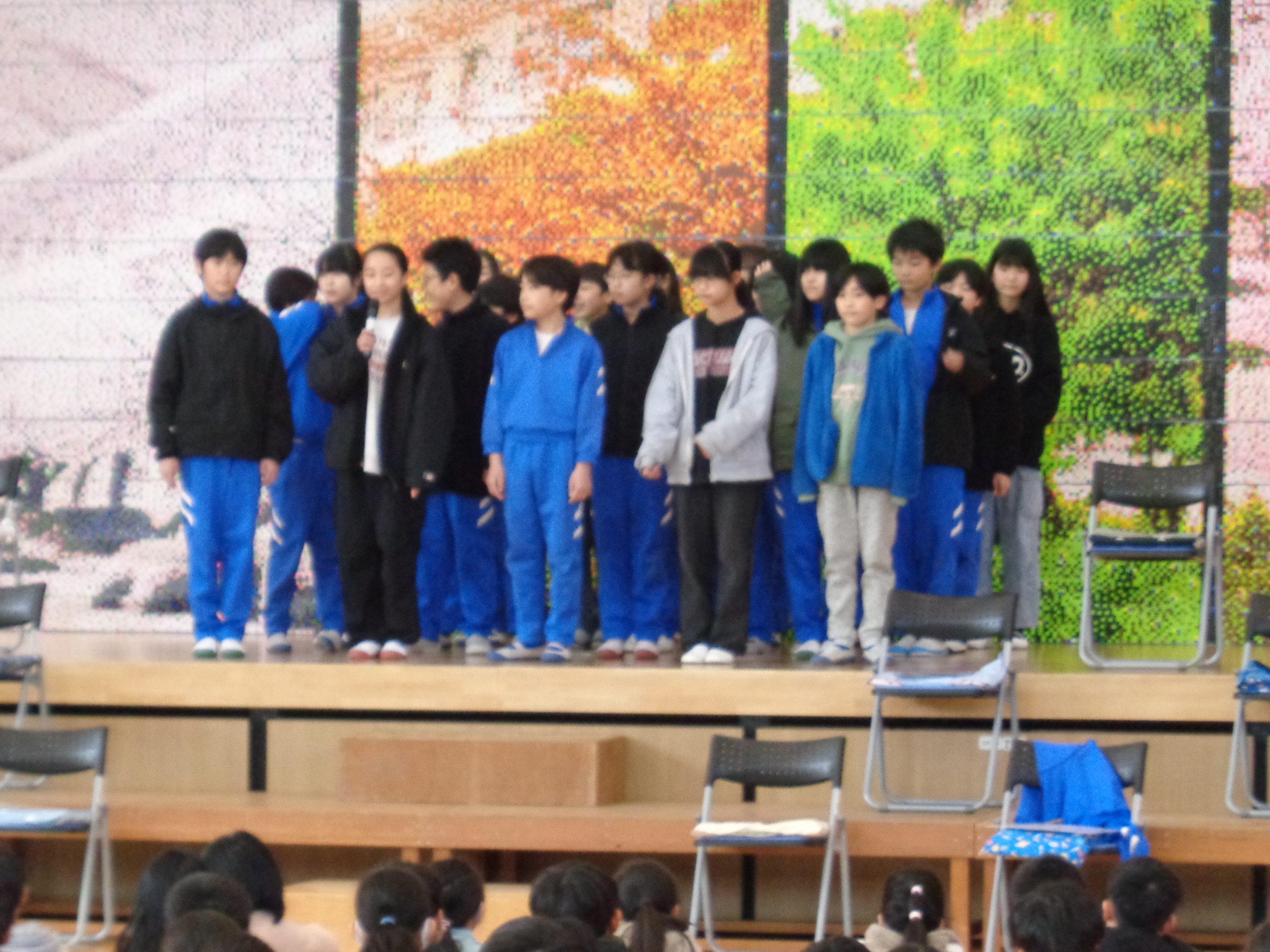 この日の3・4校時、体育館で、6年生を送る会を行いました。新児童会が企画・運営する最初の集会ですが、下級生も5年生の指示に従いながら、6年生に感謝の気持ちを伝えるために、がんばっていました。