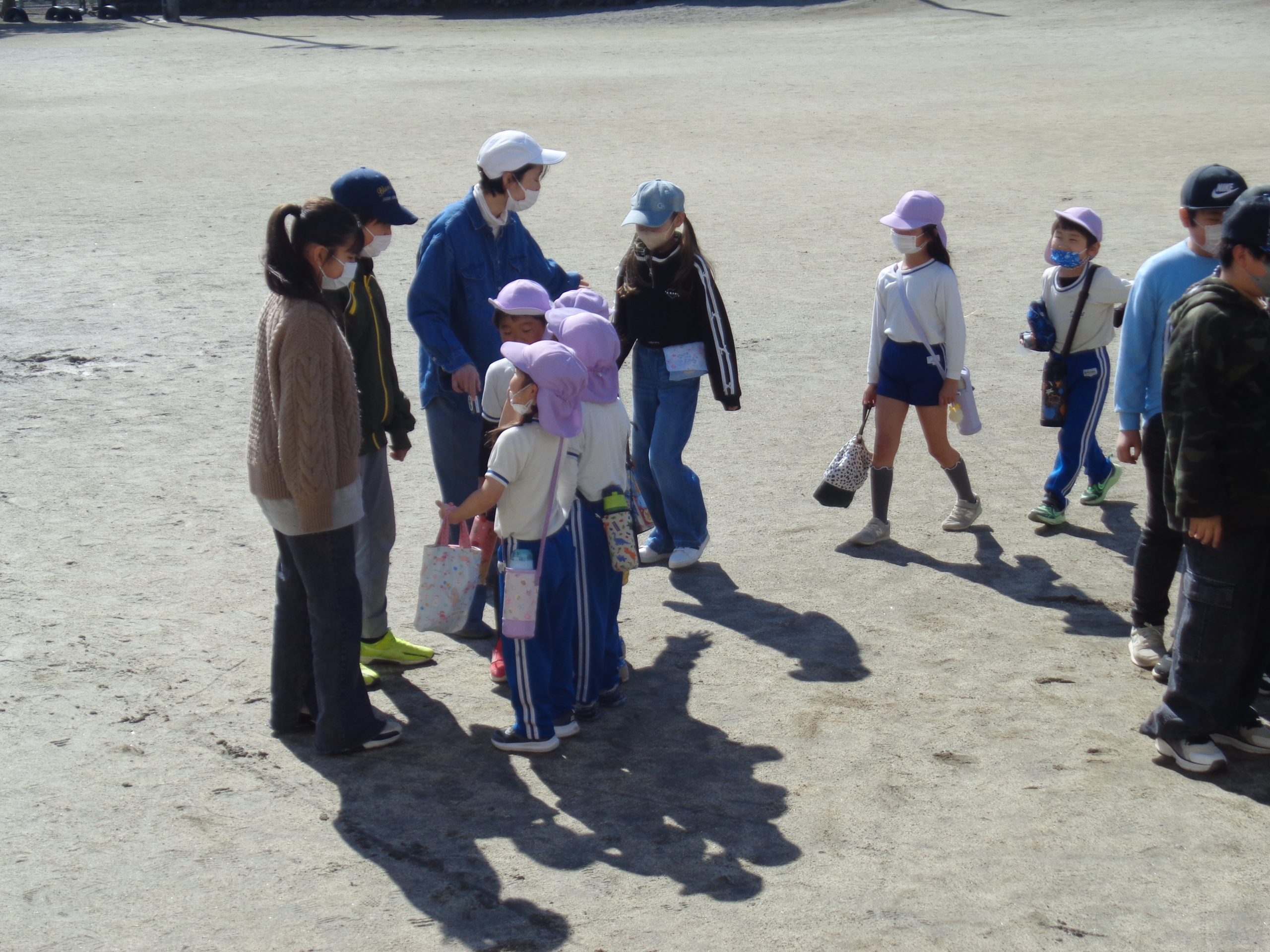この日の午前中、校区にある『みだい幼稚園』の年長児が来校し、学校の遊具で遊んだり、校舎内の見学をしたりしました。遊具遊びには4年生の子どもたちが園児をエスコートしてくれました。